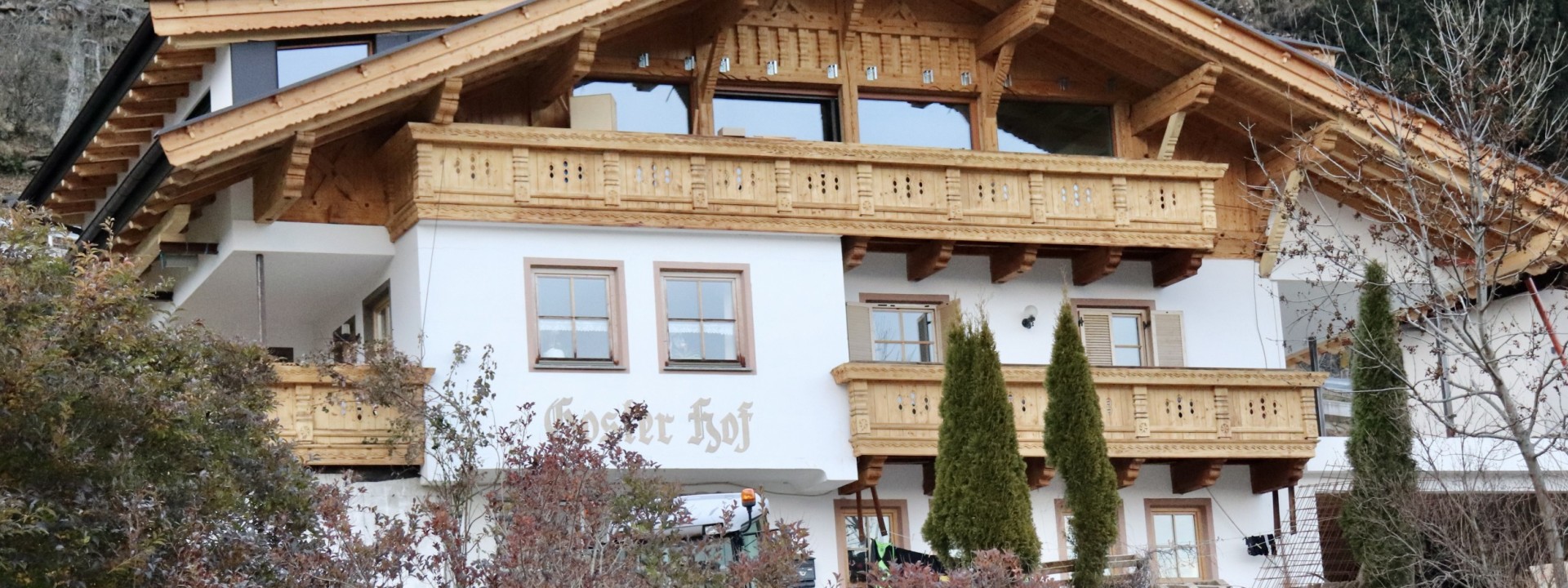 Der Hof hat sich im Laufe der Zeit stetig weiterentwickelt und seit einigen Jahren widmen wir uns der Direktvermarktung unserer hofeigenen Produkte. Jüngst wurde der Bau des Hofchalets und des Bauernhauses abgeschlossen. Der gesamte Hof wird durch die eigene Hackschnitzel-, Solar- und Photovoltaikanlage nachhaltig betrieben, das benötigte Holz liefern unsere Wälder. Durch die eigene Bergquelle werden sämtliche Gebäude und Infrastrukturen am Hof mit frischem Quellwasser versorgt. Zum Goster gehören ausgedehnte Grünland- und Bergwiesen, Wälder und Almflächen – wertvolle Naturflächen, die hochwertiges Grundfutter für unsere zahlreichen Tiere liefern und die bäuerliche Vielfalt unseres Hofes prägen.